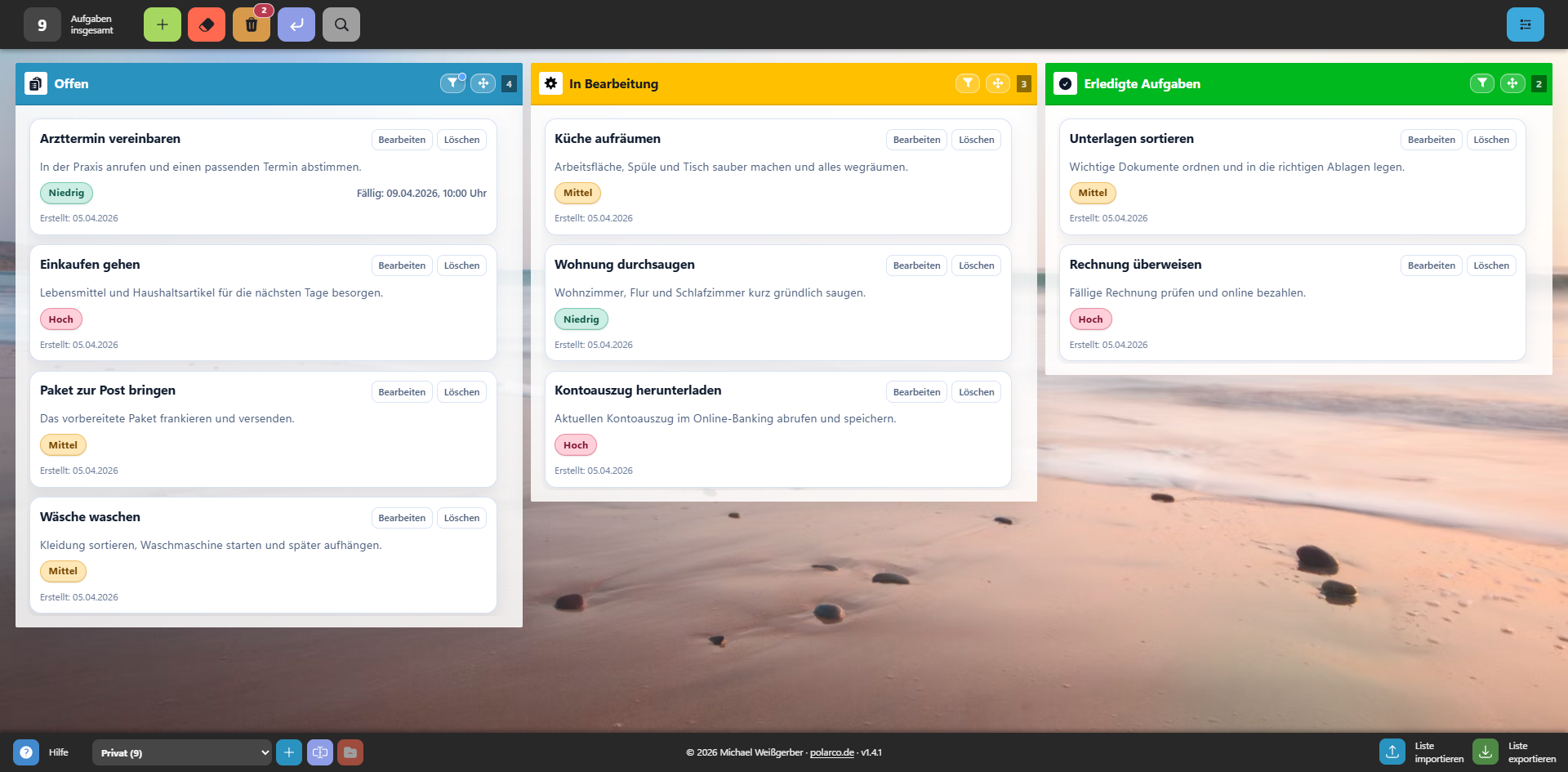 Im Zentrum stehen flexible Spalten, schnelles Verschieben per Drag-and-Drop, ein durchdachter Papierkorb und viele kleine Komfortfunktionen, die sowohl auf Desktop als auch auf Mobilgeräten sinnvoll nutzbar sind.